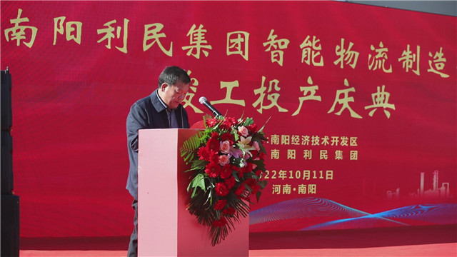 10月11日,南陽利民集團智能物流制造項目竣工投產慶典在宛城區(qū)舉行,宛城區(qū)區(qū)長樊牛出席并講話,區(qū) 陳明遠、劉文昌、賈迪、崔振世等參加。